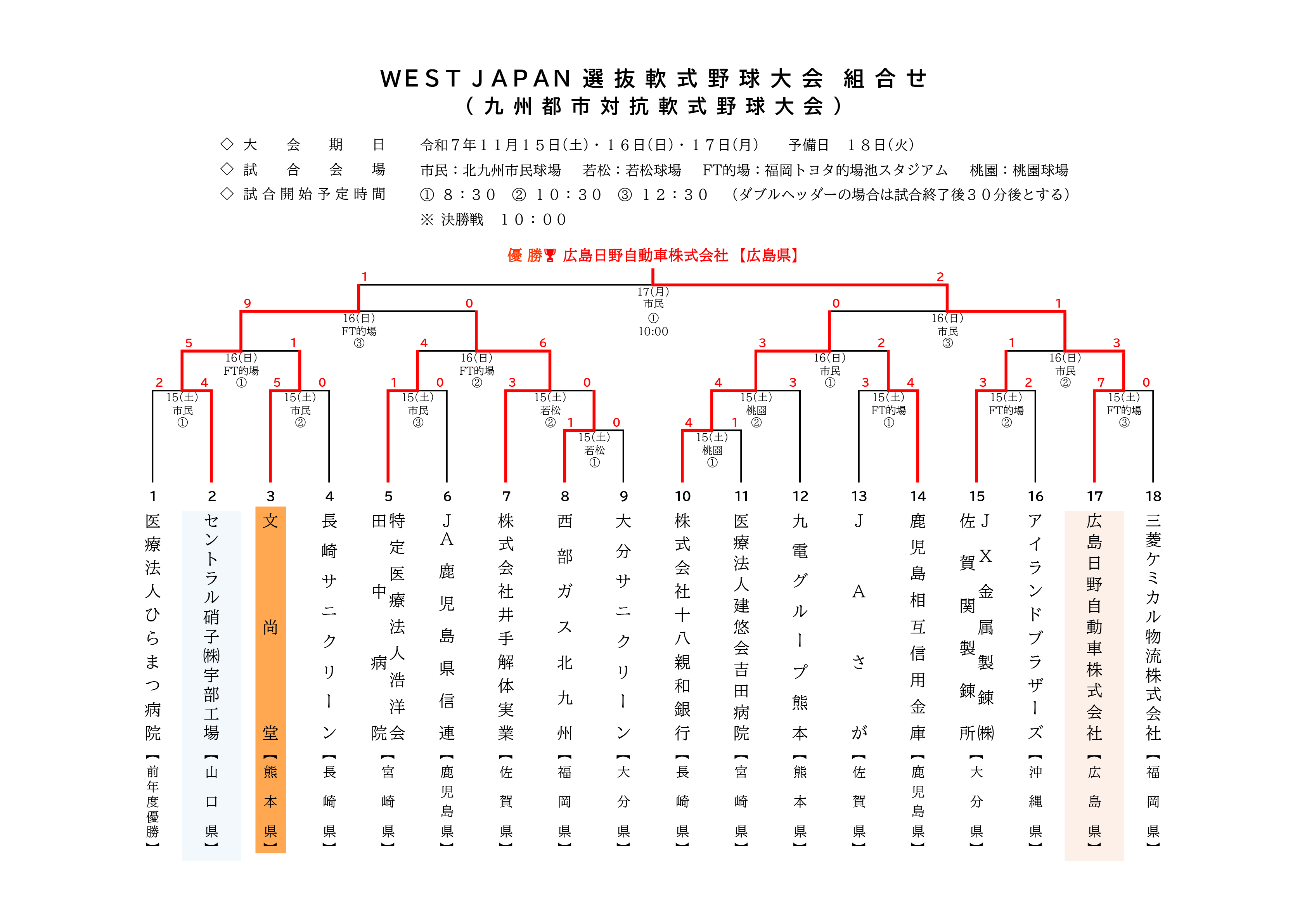 | 6/26(日) | 準決勝 味千拉麺 (9:00・水前寺球場) |